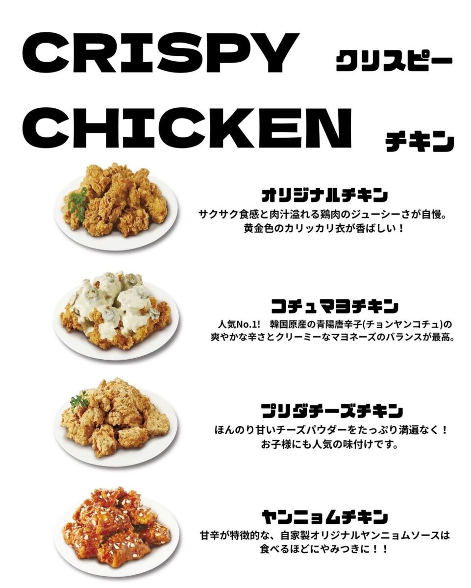 今回は人気4種類を紹介‼️大きく分けて、ノーマル、マヨネーズ(ピリ辛)、チーズ、ヤンニョム(甘辛)になります◎