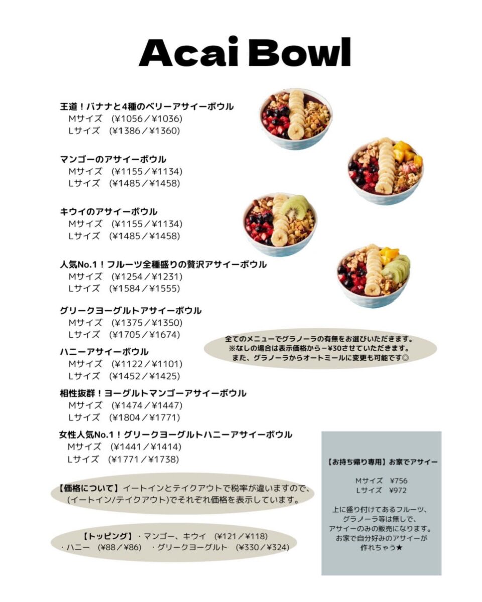 ⚠️当施設は複合施設の為、お食事スペースが共同となります。アサイーボウルの確約は可能ですが席はお客様自身での確保をお願いいたします。